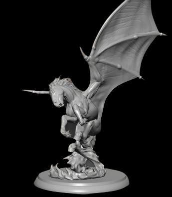 A large flaming horse with draconic wings in translucent plastic