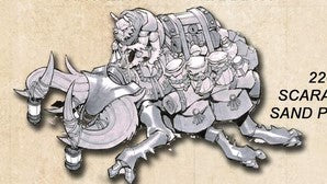Anthropomorphic scarab traiter riding a giant scarab caravan mount